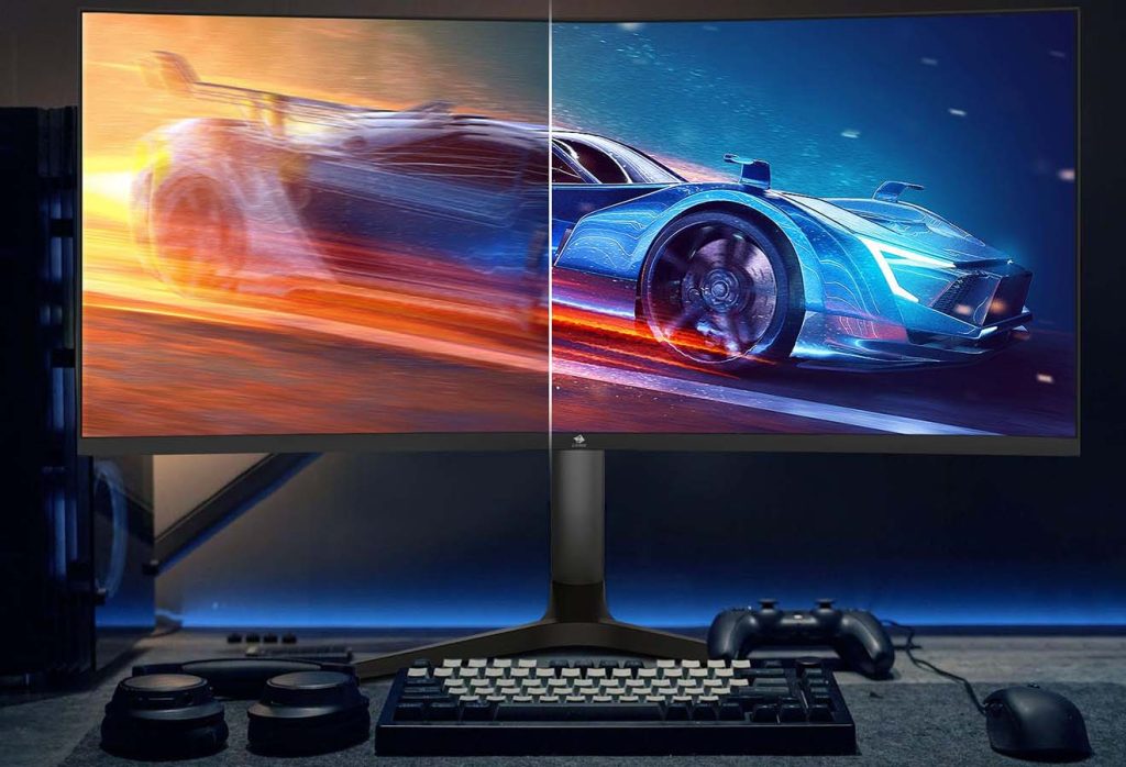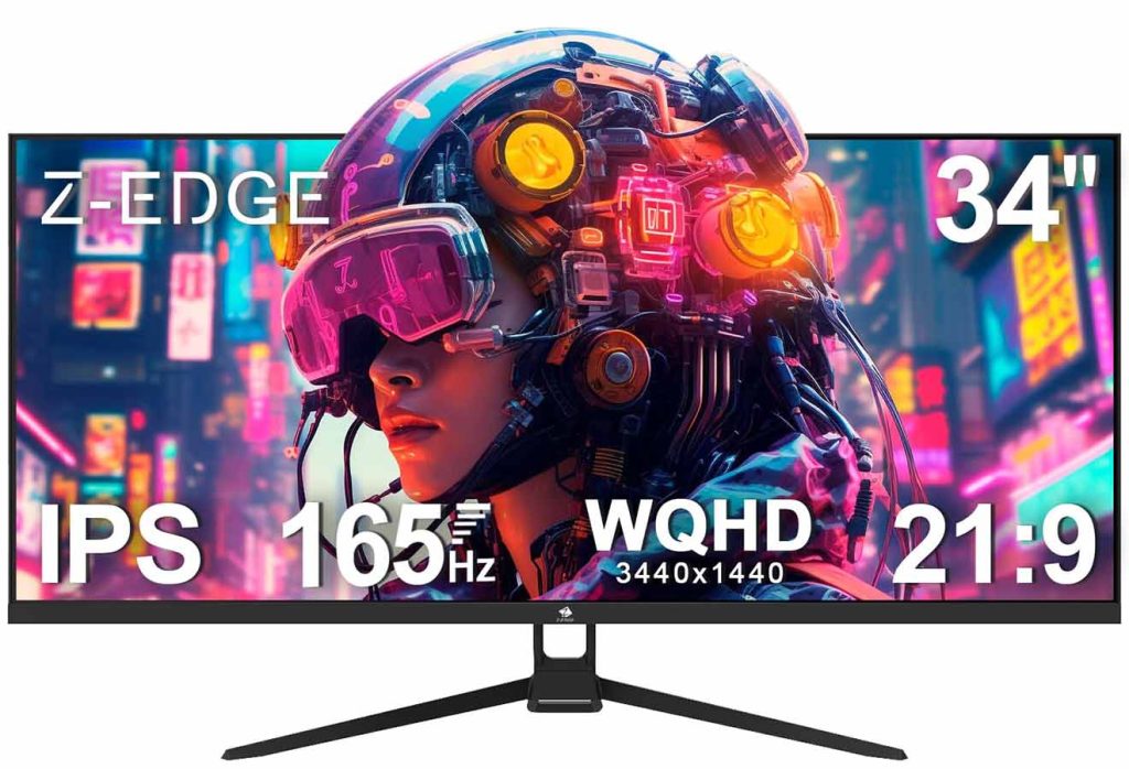 Het meest opvallende aspect van de Z-Edge Gaming Monitor 34” is zonder twijfel het ultrabrede 21:9 beeldverhouding. Met een indrukwekkende resolutie van 3440×1440 (UWQHD) biedt dit scherm een panoramisch gezichtsveld dat ver uitsteekt boven het traditionele 16:9-formaat.